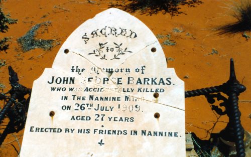 Rest Places: Abrolhos Islands, Bannister, Broad Arrow Kurawah Cemetery, Caiguna, Condon Cemetery, Davyhurst Cemetery, Eucla, Gabanintha, Glendalough, Goomalling, Greenmount Hill, Karridale Pioneer Cemetery, Moolyella Tin Field, Mount Newman Cemetery, Mulwarrie, Nornalup, Nannine Cemetery, Noonagin Rock, Old Halls Creek Cemetery, Old Wannamal Cemetery, Onslow Pioneer Cemetery, Pender Bay, Uaroo Station, Wickepin Pioneer Cemetery, Wubin