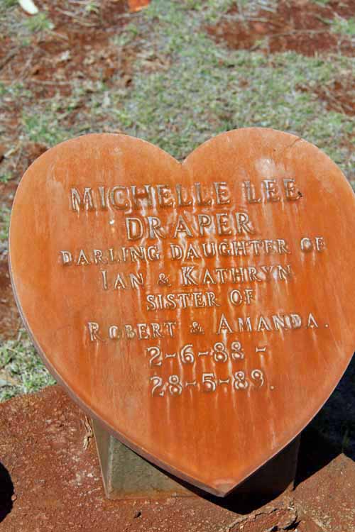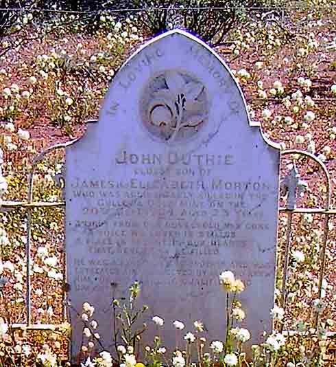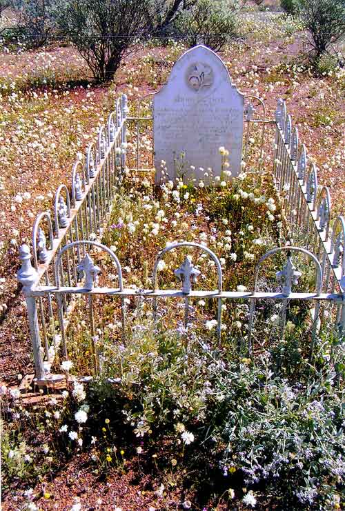Resting Places: Akaroa near Koorda, Argyle Downs Homestead, Bardoc No 1 Cemetery, Broad Arrow Kurawah Cemetery, Denham River Station, Freshwater Camp Cemetery Denham (now Pioneer Park), Gullewa Cemetery, Hawthornden Estate Toodyay, Ivanhoe Station, Lady Harris Mining Lease, Milly Milly Station Cemetery, Mt Newman Cemetery, Nabberu, Onslow Pioneer Cemetery, Shark Bay, Turner River Station, Uaroo Station, Widgiemooltha Cemetery