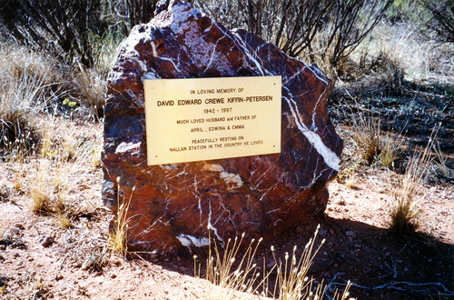 Rest Places: Bannister, Broad Arrow Kurawah Cemetery, Bronzewing, Davyhurst Cemetery, Gibbings Island, Glenroy Station Kimberley, Grave Dam Kanowna, Grass Patch Cemetery, Karridale Pioneer Cemetery, Keaney College Bindoon, Lakeway Pioneer Cemetery, Milly Soak, Mt Newman Cemetery, Mundrabilla Station, Murrin Murrin, Old Halls Creek Cemetery, Onslow Pioneer Cemetery, Speakmans Find Menzies District, Wickepin Pioneer Cemetery