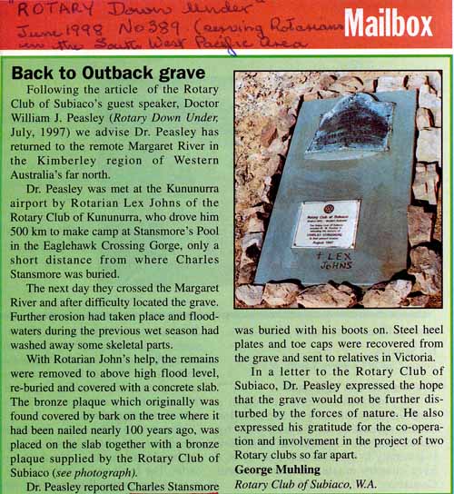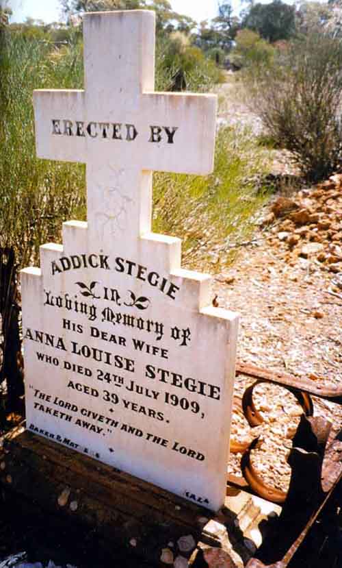 Rest Places: Ben Dhue Station East Pilbara, Broad Arrow Kurawah Cemetery, Condon Cemetery, Cull Culli Station Cemetery, Davyhurst Cemetery, Gordon Downs Station, Hamelin Cemetery Karridale, Henley Brook, Israelite Bay, Margaret River Station near Halls Creek, Markegin, Meentheena Station, Meka Station, Mt Newman Cemetery, Mourambine Churchyard, Mulline Cemetery, Mundrabilla Station Nullarbor Plains, Onslow Pioneer Cemetery, Uaroo Station Cemetery, Upper Swan, Well 49 Canning Stock Route
